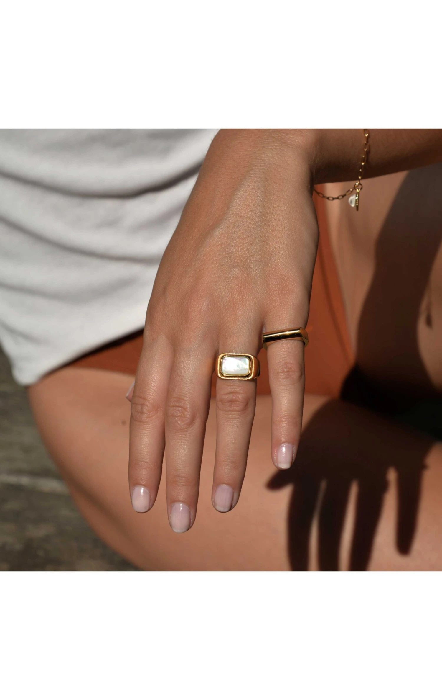 Vous allez adorer cette bague en forme de chevalière avec son cabochon en nacre. Son cĂ´tĂ© classique est contre-balancĂ© par sa forme masculine. En acier chirurgical elle pourra traverser le temps sans qu’elle ne se ternisse.