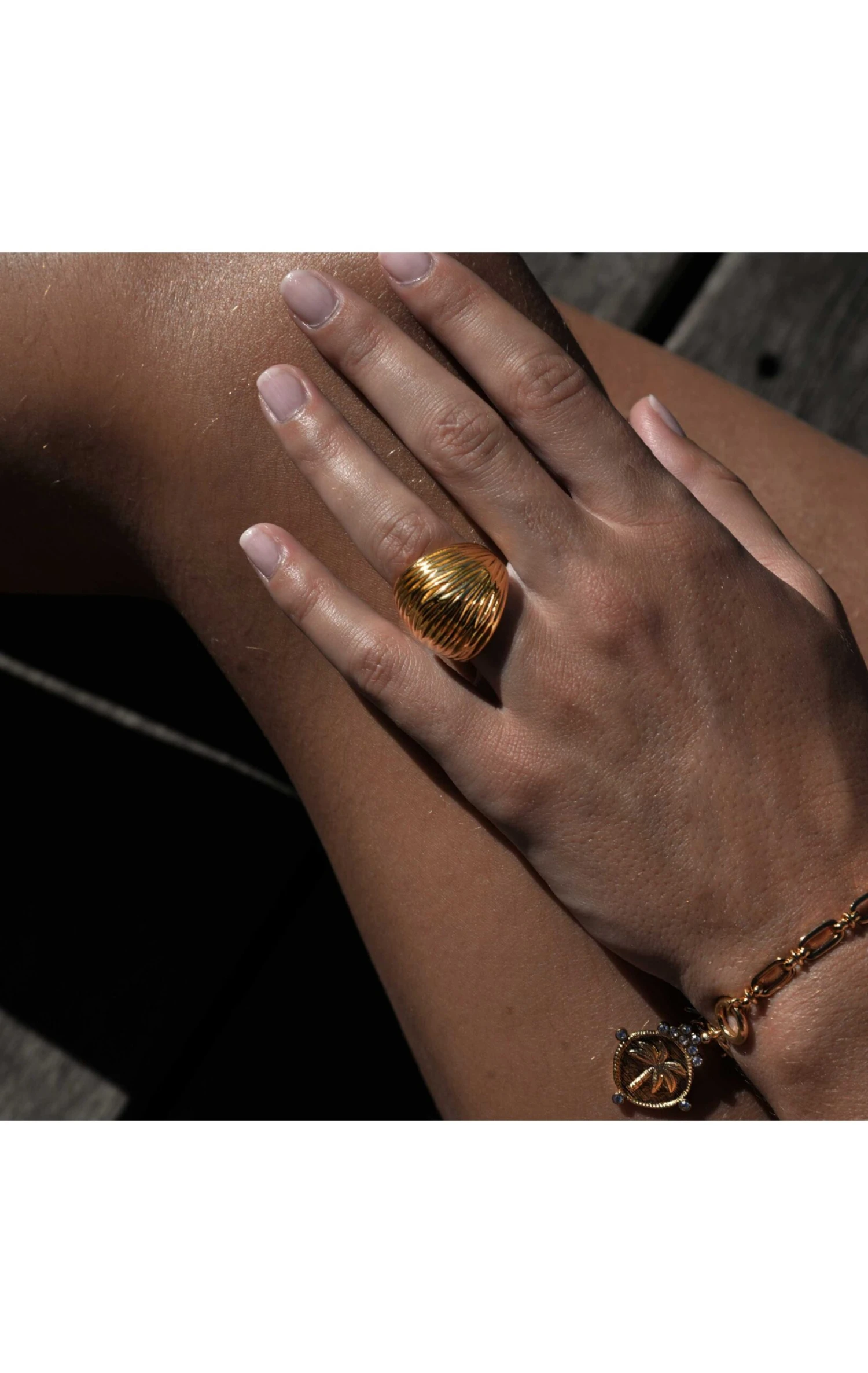 Vous ne pourrez plus vous passer de cette bague imposante si Ă©lĂ©gante. De forme boule, cette pièce est aussi classique que intemporelle. Vous pourrez l’assortir aves toutes vos tenues.