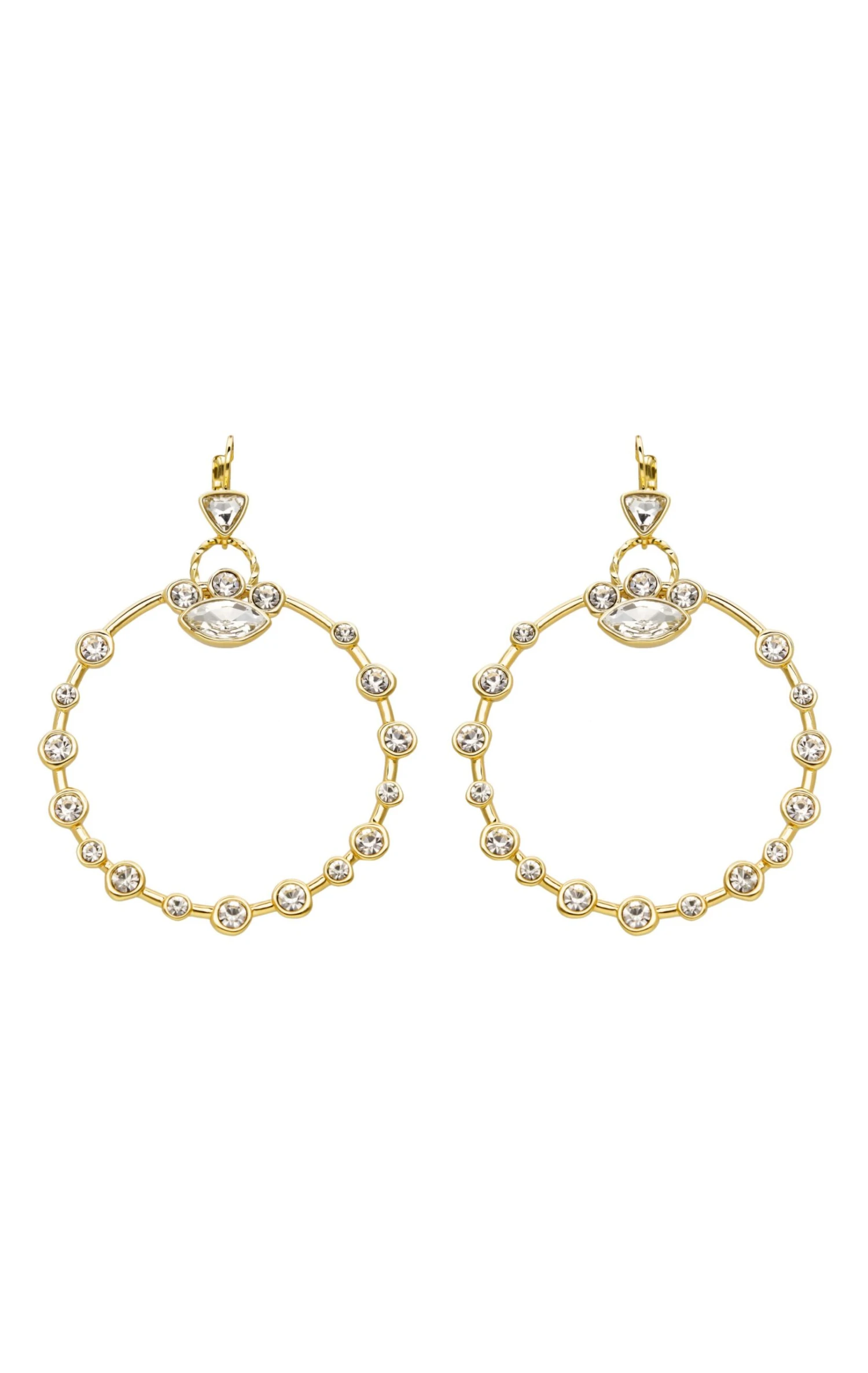 Direction Bollywood avec nos extravagantes crĂ©oles strassĂ©es! Boucles d’oreilles en crĂ©oles dorĂ©es Ă l’or fin 14 carats, montĂ©es sur dormeuse pour oreilles percĂ©es, avec une tĂŞte de boucle forme Ĺ“il ornĂ©e de cils en strass. La crĂ©ole est ouvragĂ©e de strass ronds effet diamant. Ce bijou est fait Ă la main.