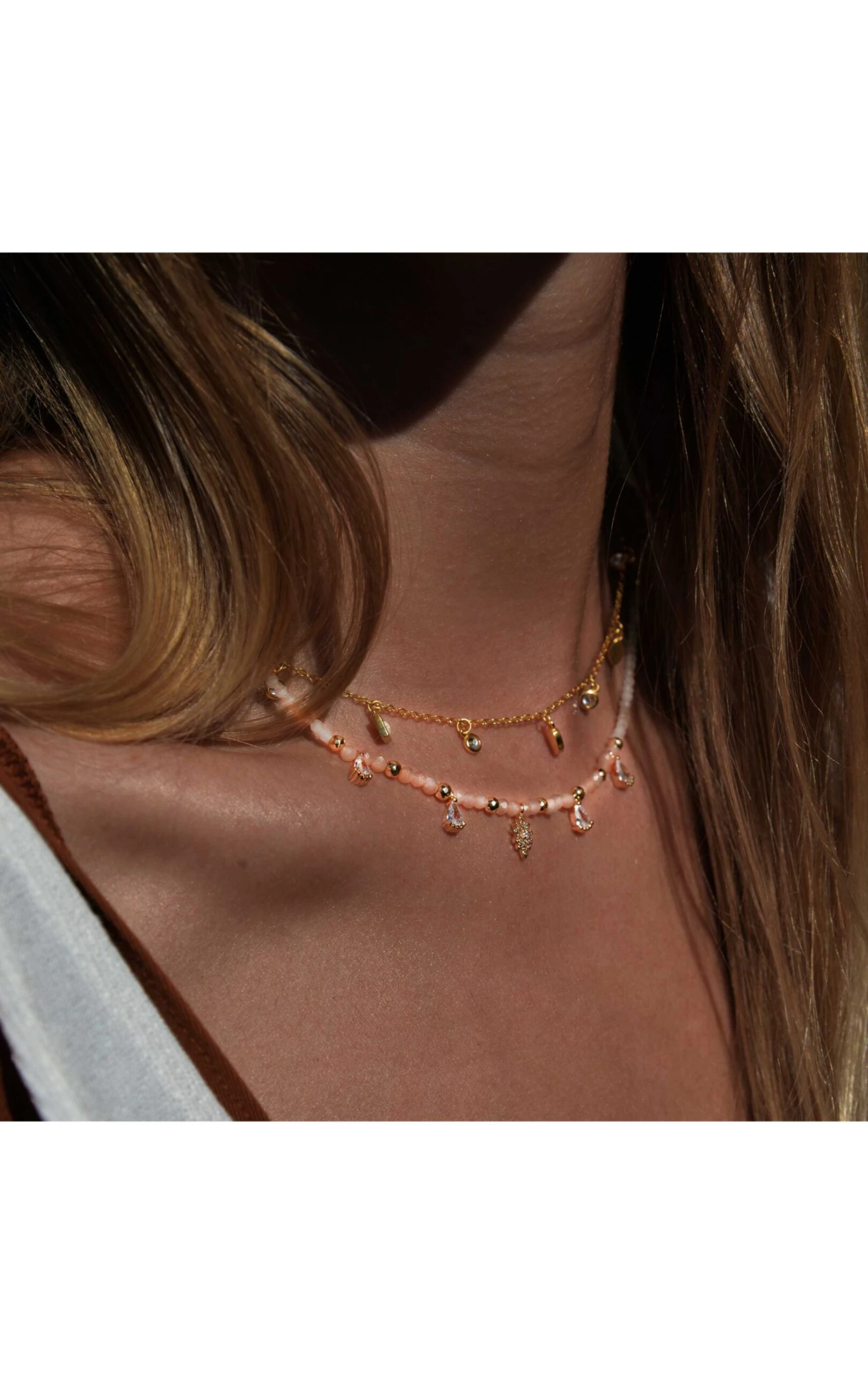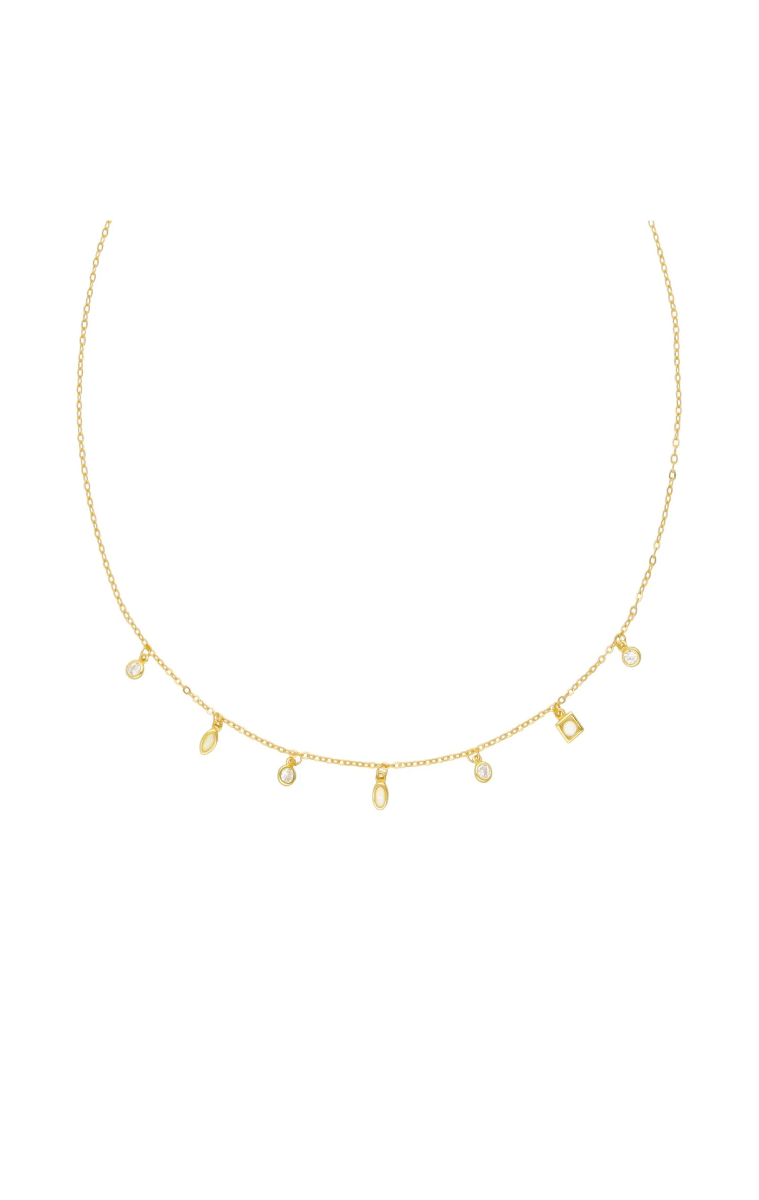 Collier ras de cou sur une chaĂ®ne forçat, parsemĂ© de pampilles composĂ©es de petites gouttes strassĂ©es effet diamant,ou en opale vĂ©ritable. Ce très joli collier, Ă porter seul ou en accumulation, est l’occasion de dĂ©couvrir les vertus magiques de l’opale, une pierre aux reflets arc-en-ciel multicolores. DorĂ© Ă l’or fin 18 carats sur de argent 925 vĂ©ritable, ce bijou en vermeil vous est garanti sans risque d’allergie.