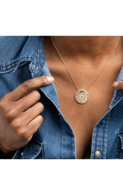 • Chaîne et médaillon en cuivre dorée à l’or fin 0,5 microns 14 carats.