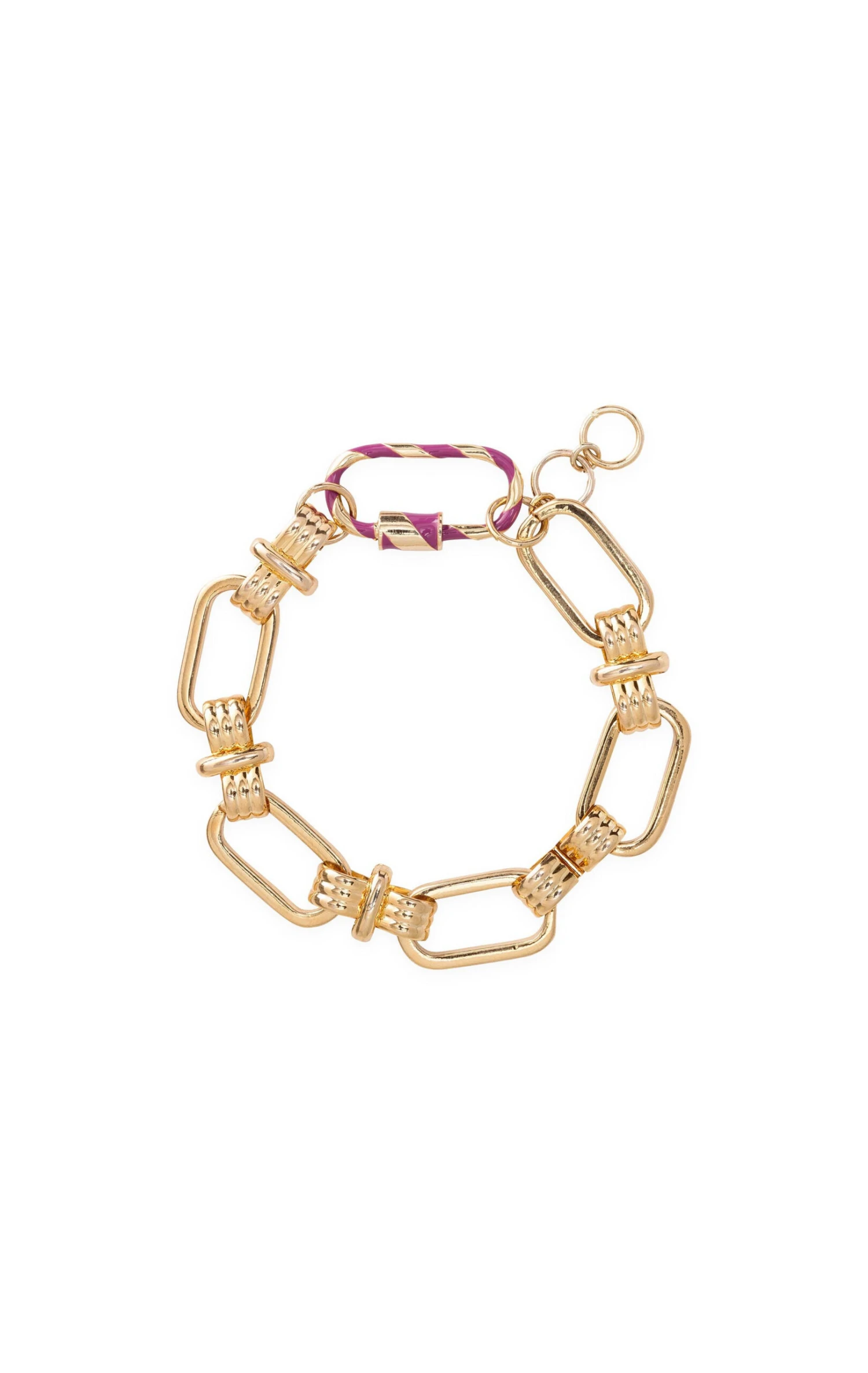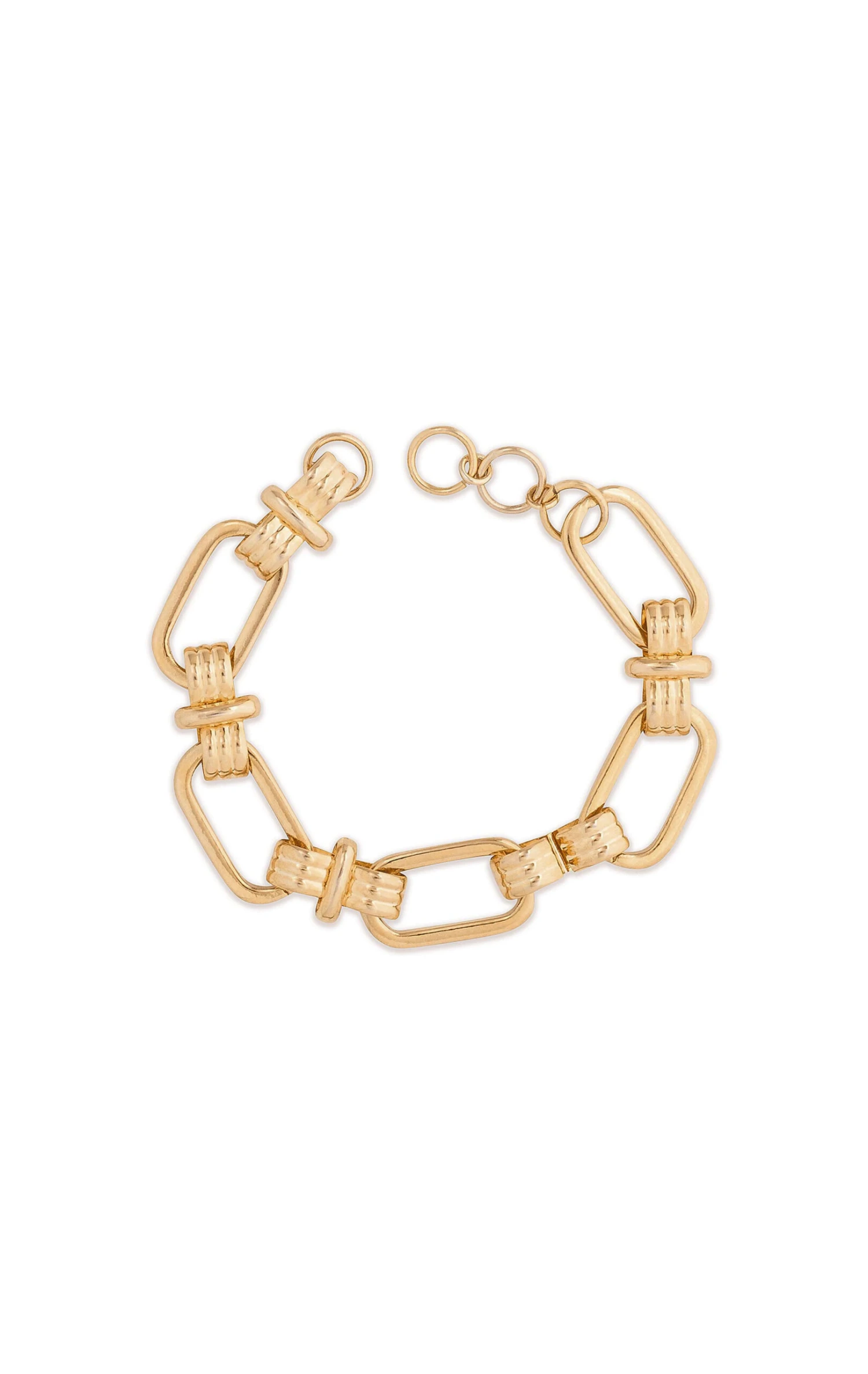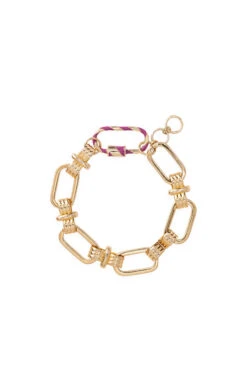 Les bracelets « CLARE » sont les liens en chaĂ®ne. Ici vous est prĂ©sentĂ© une chaĂ®ne Ă©paisse de maille ovale intercalĂ©e d’anneaux, dorĂ©e Ă l’or fin 14 carats.