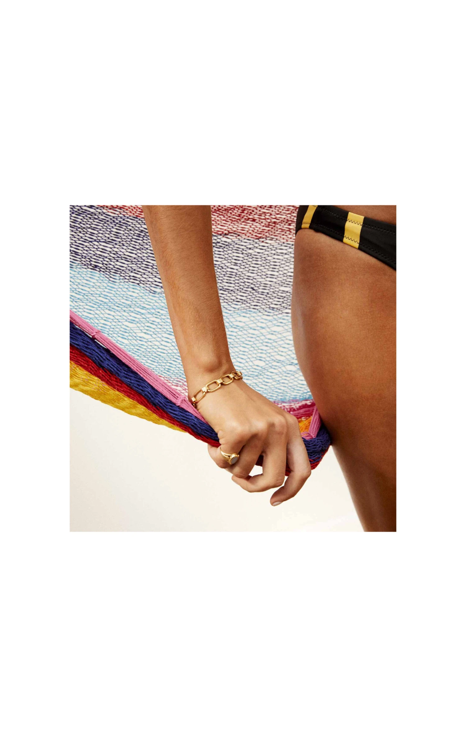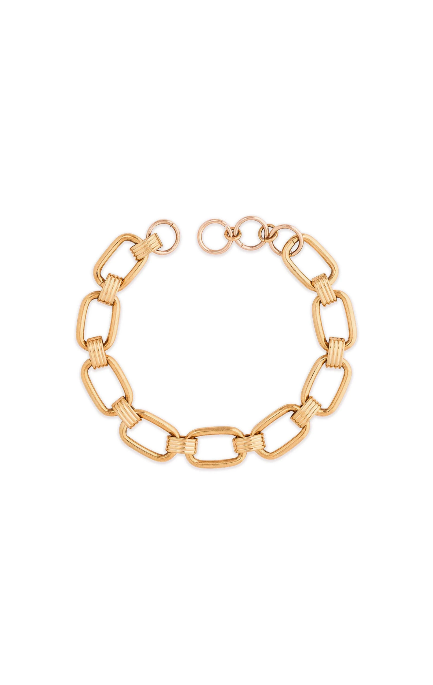 Les bracelets « CLARE » sont les liens en chaĂ®ne. Ici vous est prĂ©sentĂ© une chaĂ®ne Ă©paisse fantaisie de maille ovale plate intercalĂ©e de trois anneaux, dorĂ©e Ă l’or fin 14 carats.