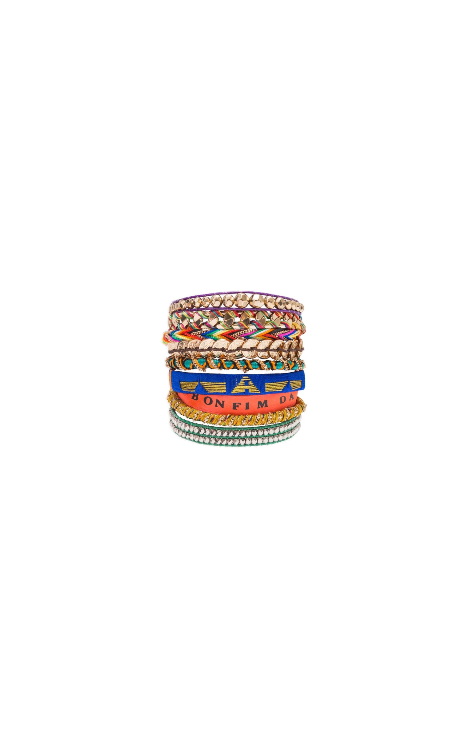 Pièce unique faite à la main, la manchette COPPER est composée de plusieurs liens multicolores. Chaque lien est relié par un fermoir doré aimanté sur lequel est gravé Hipanema.
